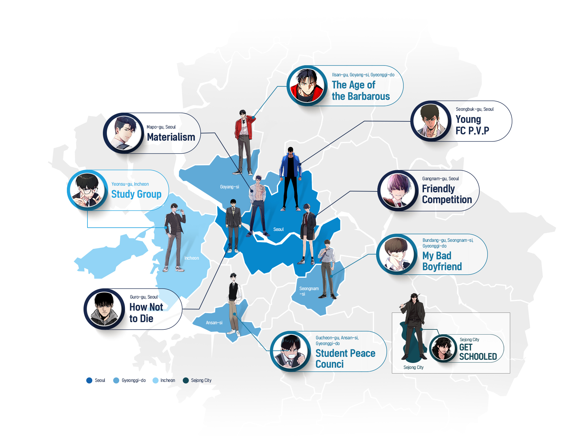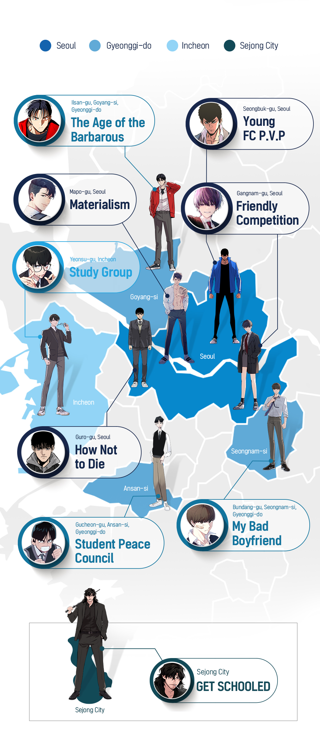Characters from various webtoons